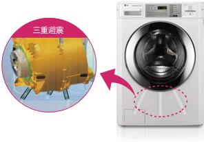三重減震器 采用三重減震器,用于全方位地吸收和減少震動(dòng),從而達(dá)到靜音操作。 基于獨(dú)立測試,LG滾筒洗衣機(jī)和烘干機(jī)是同類產(chǎn)品中最靜音的。