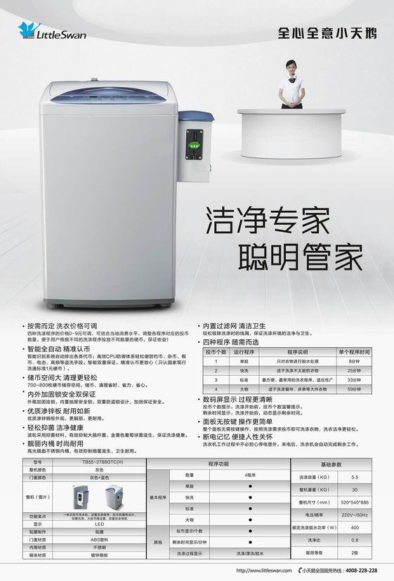 小天鵝特制型號TB55-2788GTC投幣洗衣機全國上市